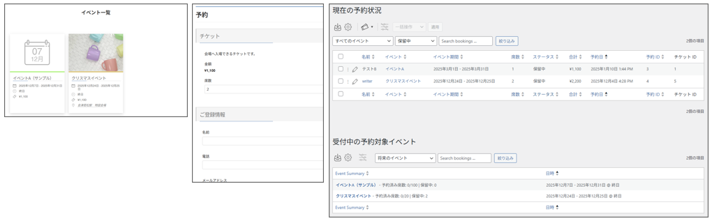 ・イベント予約・チケット販売管理とは、イベント参加者が予約フォームから申し込む(チケットを購入する)ことができ、集客や顧客管理を大幅に効率化してくれます。